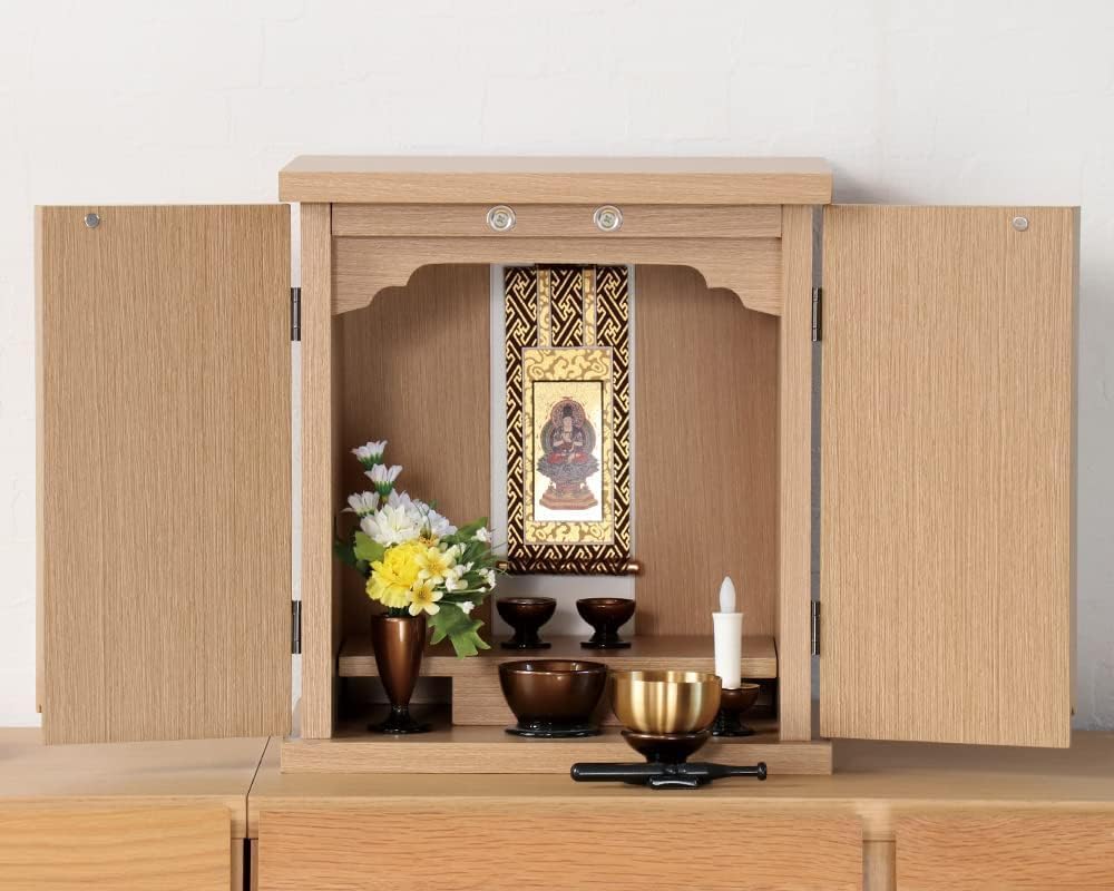 どんなお部屋・仏具にもあわせやすい木目のあるナチュラルなミニ仏壇。